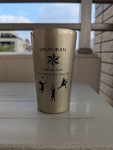 今後の抱負を力強く述べる姿はたいへん頼もしく感じました。記念品の創部100周年記念タンブラーも好評でした。
